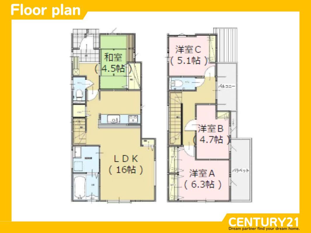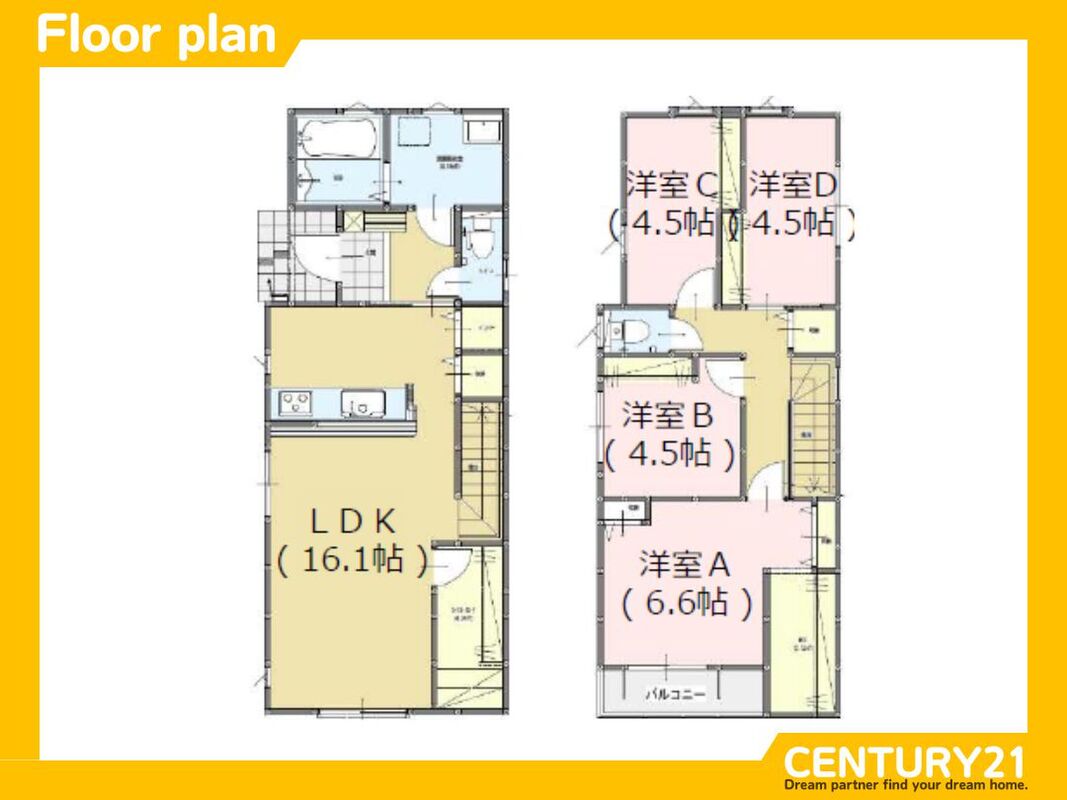 1号棟 間取り 4LDK 価格 4398万円 建物面積 93.12m2 土地面積 119.53m2 -