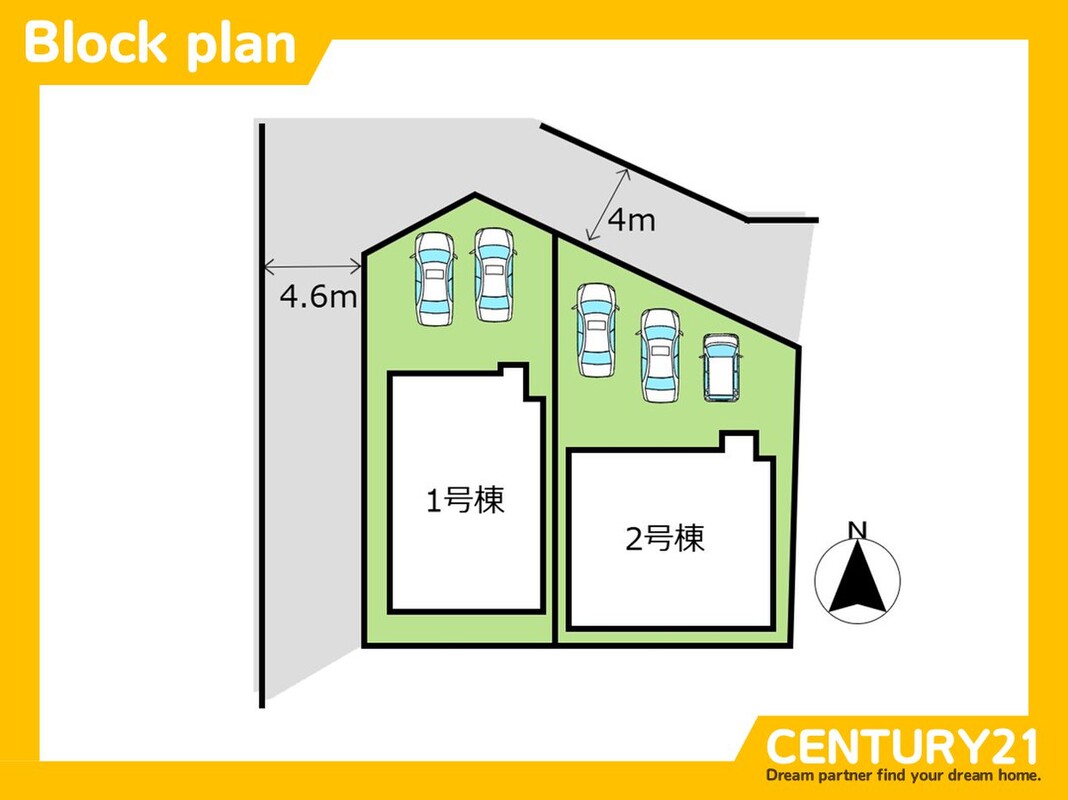 | 駐車場 | 有 カースペース2台可 | 道路の幅員 | 1号棟 角地 北東 4.0m 西 4.6m、2号棟 北東 4.0m |