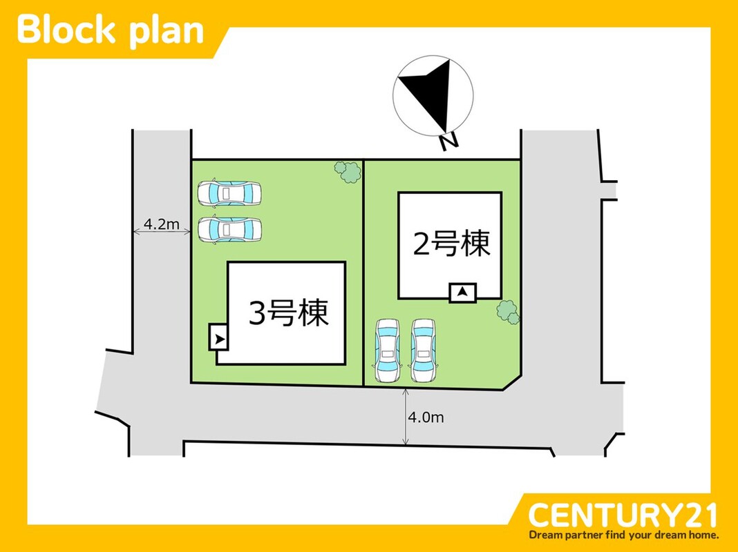 | 駐車場 | 駐車2台可 | 道路の幅員 | 北 4.0m、東 4.2m |