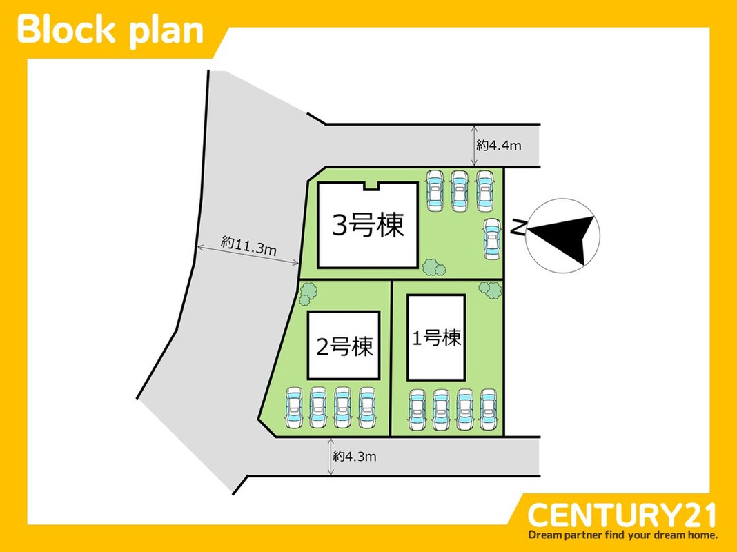 | 駐車場 | 駐車3台可 | 道路の幅員 | 西 4.3m、東 4.4m、北 11.3m |