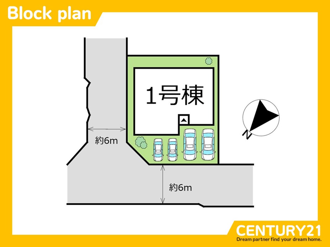 | 駐車場 | 駐車4台可 | 道路の幅員 | 北西 6m、 北東 6m |