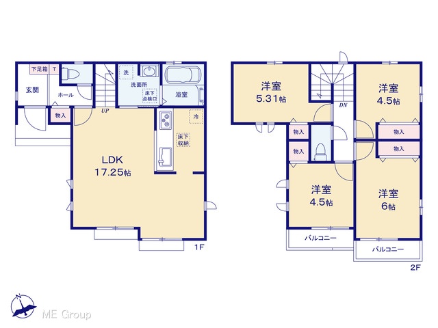 | 建物面積 | 87.45m2 | 土地面積 | 88.51m2<私道負担面積19m2> |
