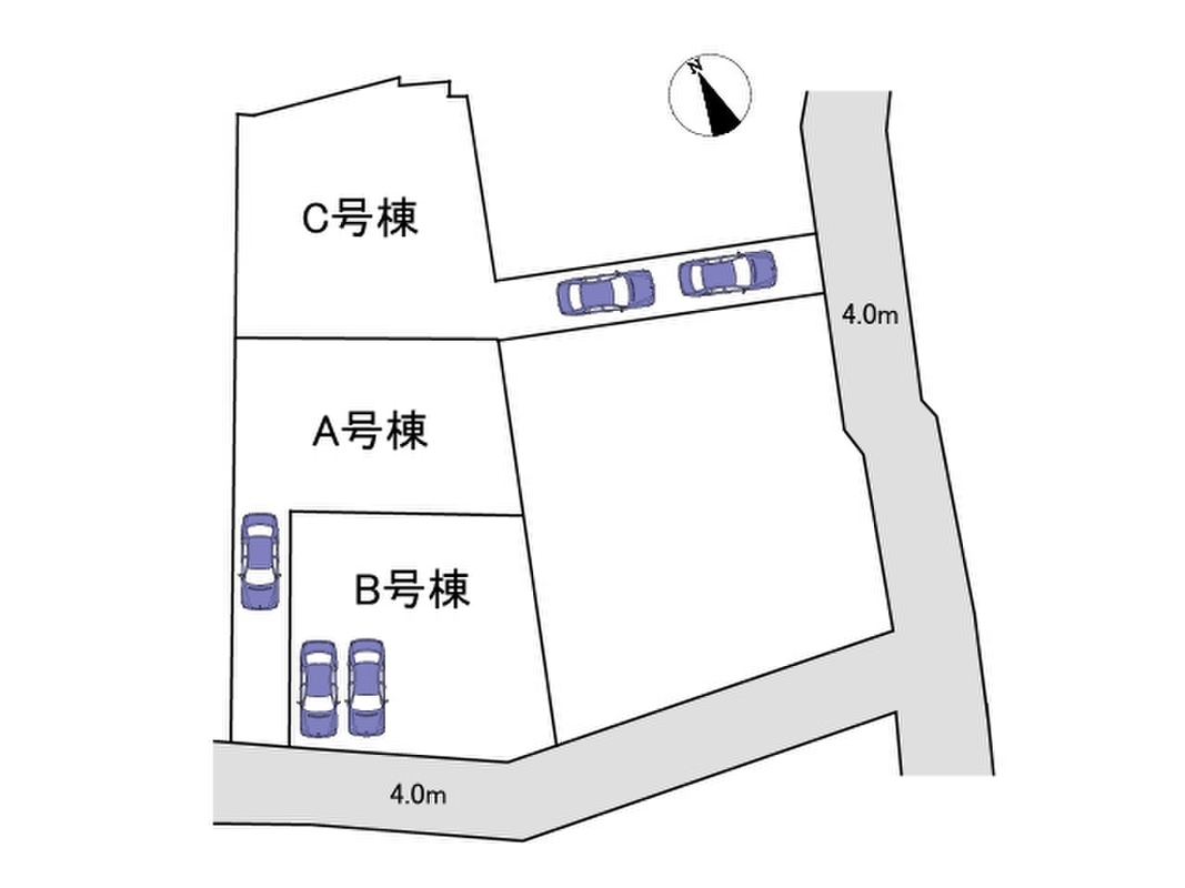 | 駐車場 | 有(A号棟1台、B・C号棟2台可) | 道路の幅員 | 南側約4.0m、東側約4.0m |