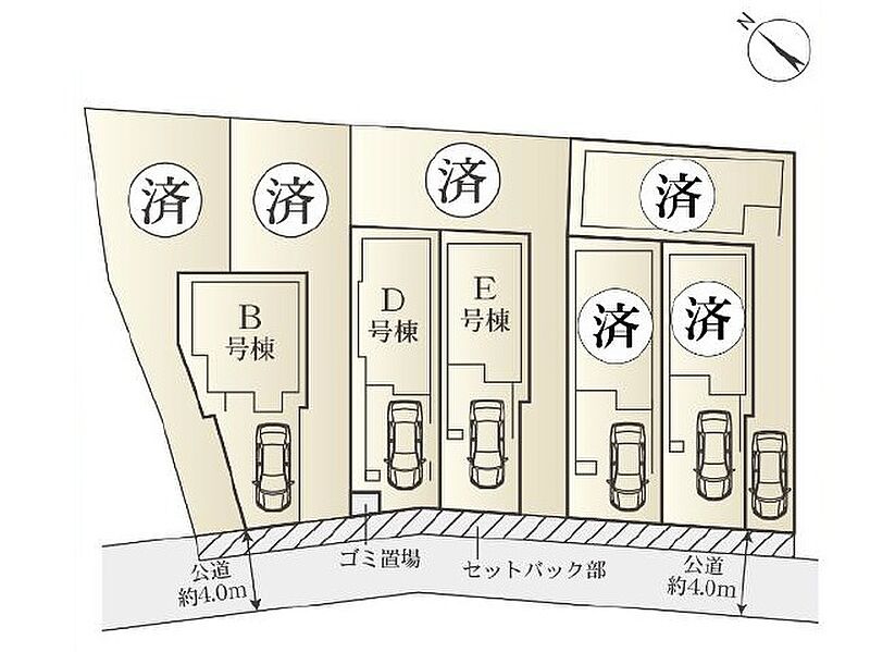 | 駐車場 | 有 | 道路の幅員 | 南西側約4.0m公道 |