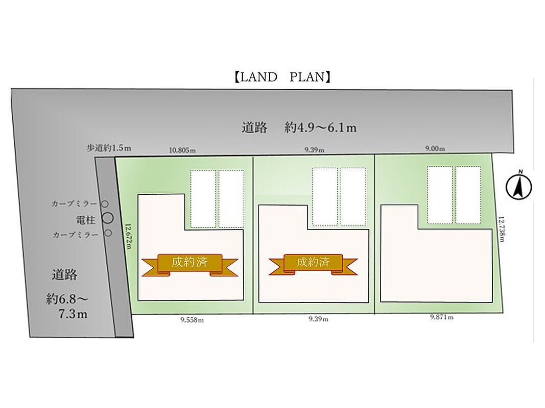 | 駐車場 | 2台 | 道路の幅員 | 北側4.9m |
