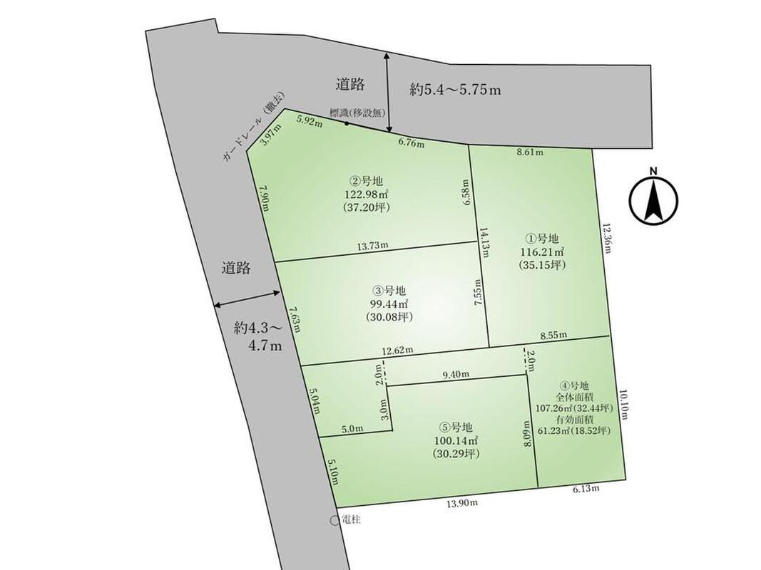 | 駐車場 | - | 道路の幅員 | 4号地:西側約4.3m~約4.7m |