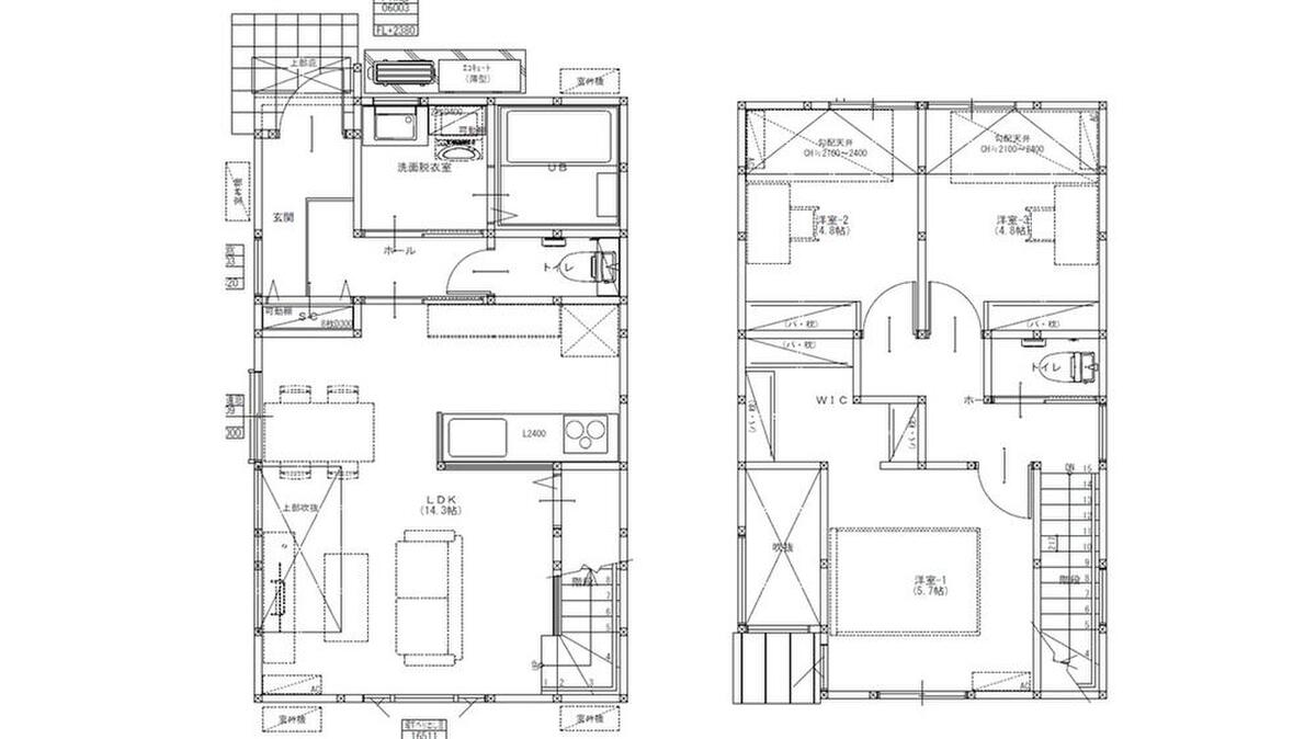 約14.3帖のLDKは、一部が上部吹抜け仕様につき、開放感があります。リビング階段が採用され、ご家族と顔をあわせてコミュニケーションをとりやすい設計。WIC付きのため、お部屋がすっきりと片付きます。