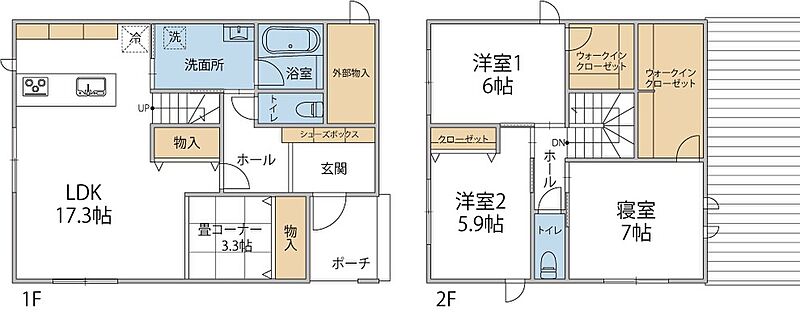 大きなクローゼットが2か所あり布団やおもちゃ、趣味のもの等場所を取るものもしっかり収納出来ます。