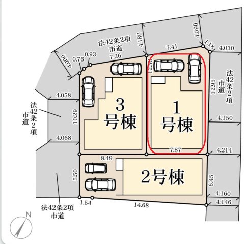 | 駐車場 | 2台 | 道路の幅員 | 北西側4.0m公道 |