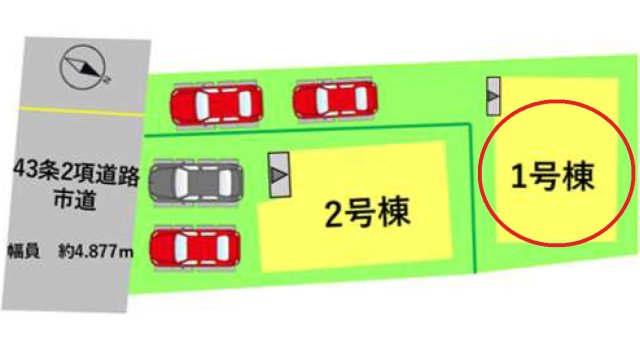| 駐車場 | 2台 | 道路の幅員 | 南側4.8m公道 |