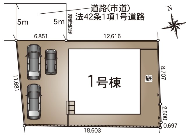 | 駐車場 | 3台 | 道路の幅員 | 北側5.0m公道 |