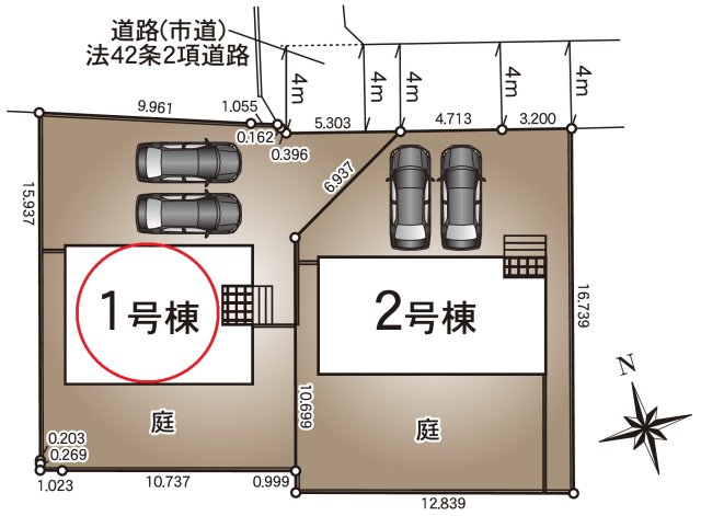 | 駐車場 | 2台 | 道路の幅員 | 北側4.0m公道 |