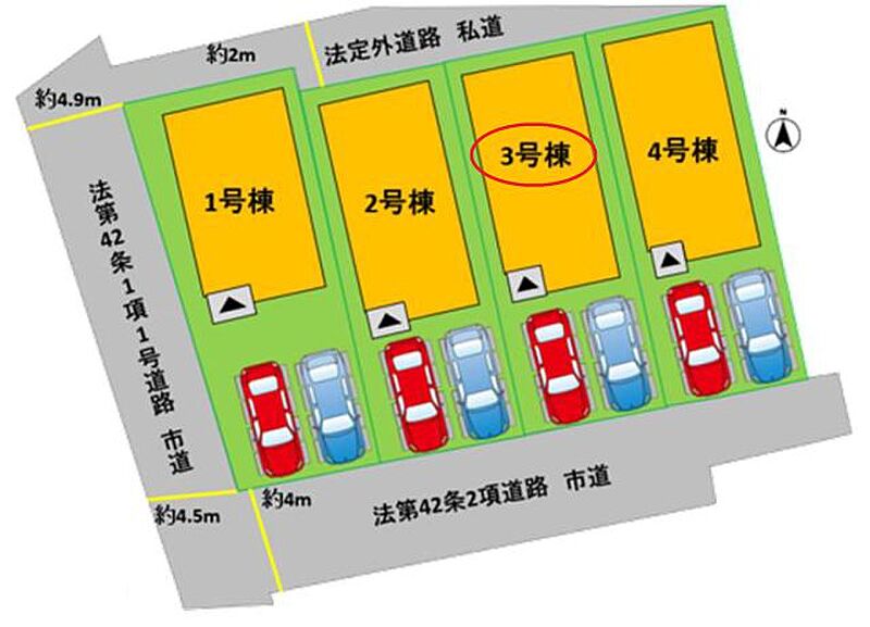 | 駐車場 | 2台 | 道路の幅員 | 南側4.0m公道 |