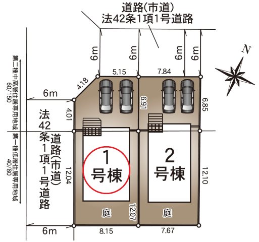 | 駐車場 | 2台 | 道路の幅員 | 北側6.0m公道 |