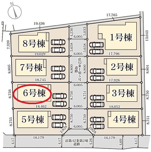 | 駐車場 | 2台 | 道路の幅員 | 南東側6.0m私道 |
