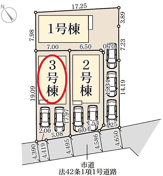 | 駐車場 | 2台 | 道路の幅員 | 南西側4.4m公道 |