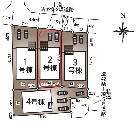 | 駐車場 | 2台 | 道路の幅員 | 北側4.5m公道 |
