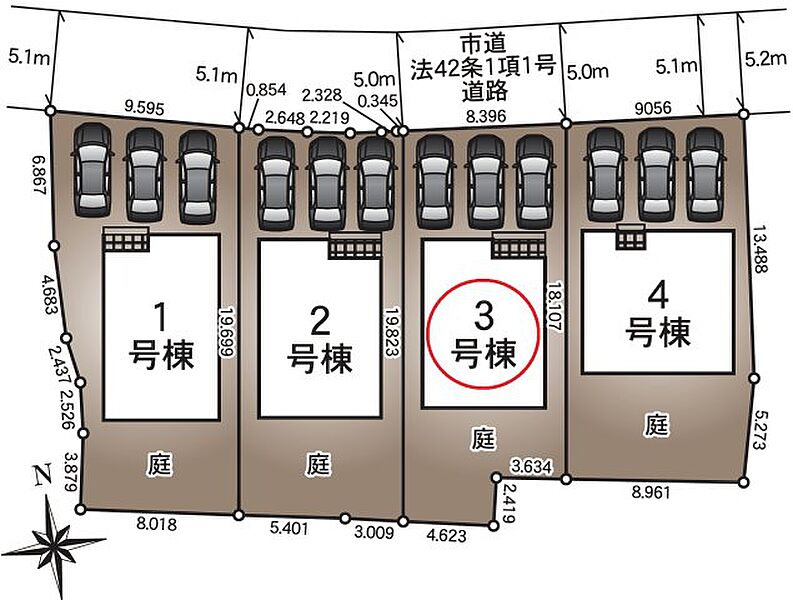 | 駐車場 | 3台 | 道路の幅員 | 北側5.0m公道 |
