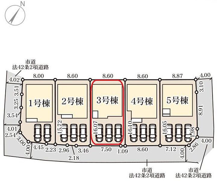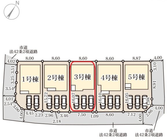 | 駐車場 | 3台 | 道路の幅員 | 南東側4.0m公道 |