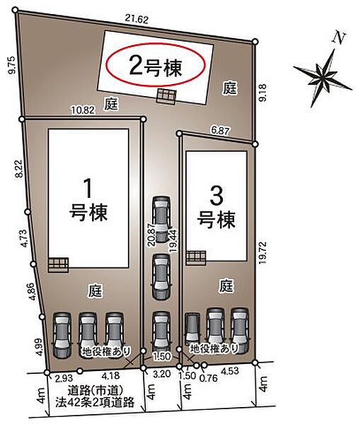| 駐車場 | 3台 | 道路の幅員 | 南側4.0m公道 |