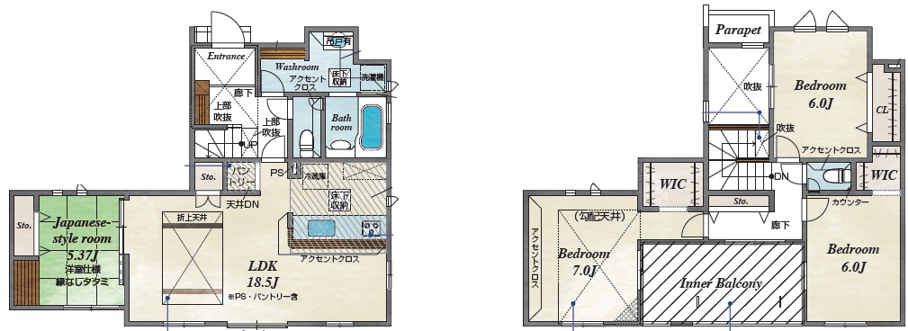 - ※完成予想図やCG合成画像は、門塀・植栽・庭・外観等、実際とは多少異なる場合があります。