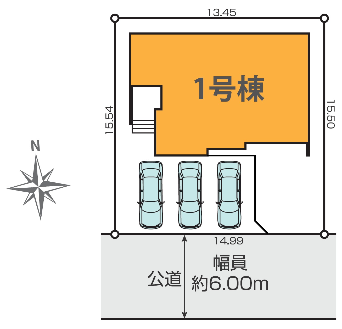 | 駐車場 | 3台 | 道路の幅員 | 南側6.0m公道 |