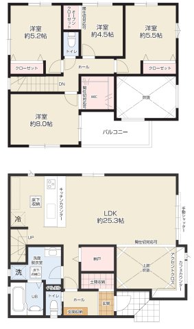 - ※完成予想図やCG合成画像は、門塀・植栽・庭・外観等、実際とは多少異なる場合があります。