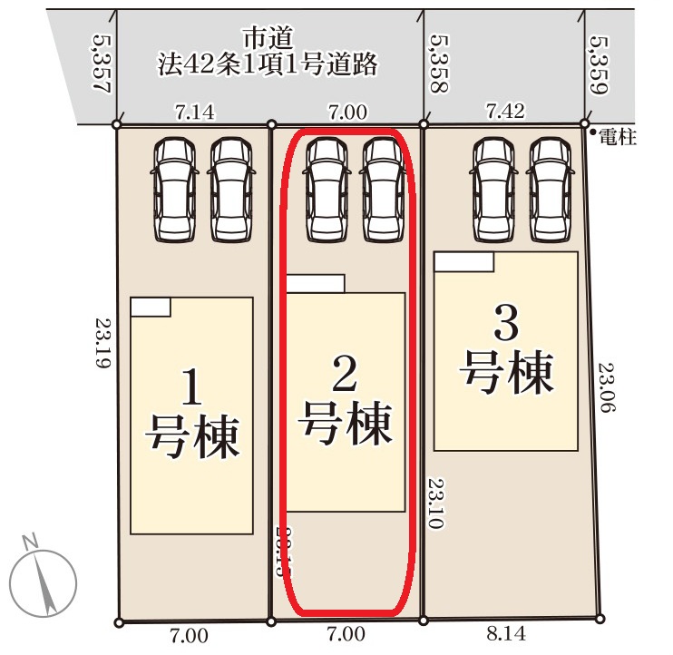 | 駐車場 | 2台 | 道路の幅員 | 北側5.3m公道 |
