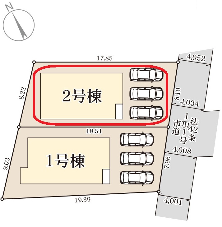 | 駐車場 | 3台 | 道路の幅員 | 南東側4.0m公道 |
