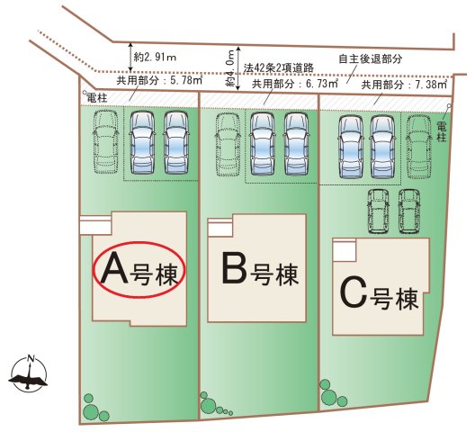 | 駐車場 | 3台 | 道路の幅員 | 北側4.0m公道 |