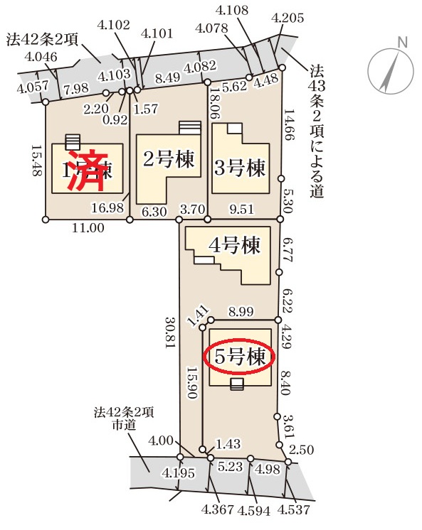 | 主たる設備の概要 | 水道:公営 排水:公共下水 ガス:都市ガス 電気:有 | 建築確認番号 | 完成済み |