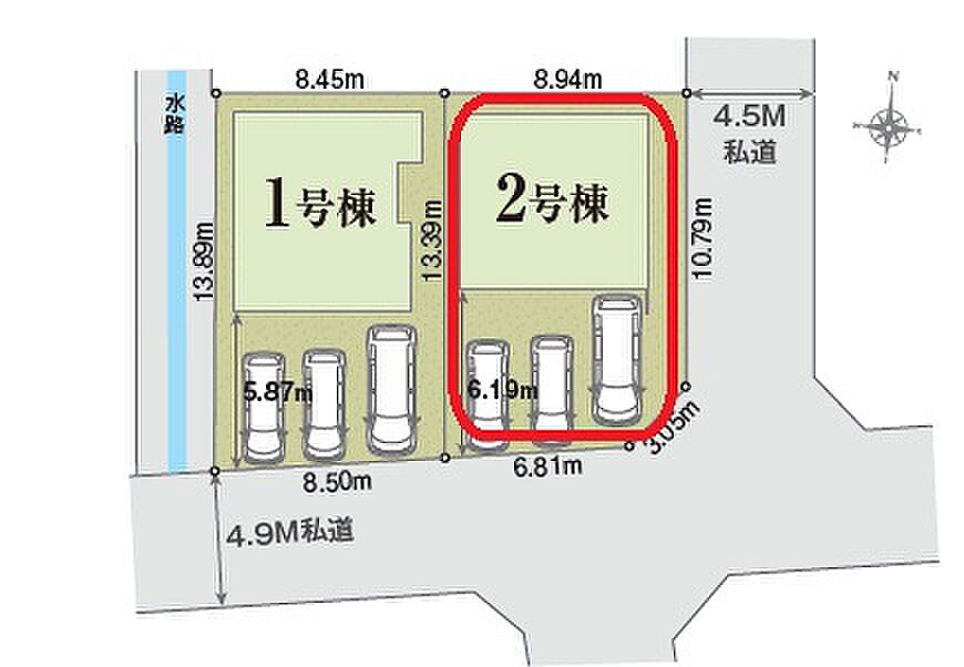 | 駐車場 | 3台 | 道路の幅員 | 東側4.5m私道 |