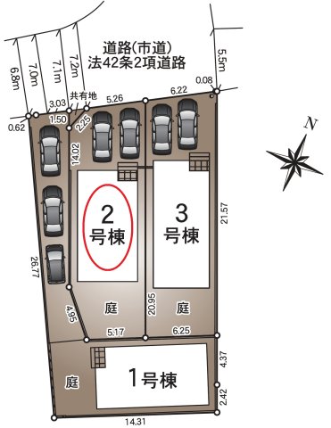 | 駐車場 | 2台 | 道路の幅員 | 北西側7.2m公道 |
