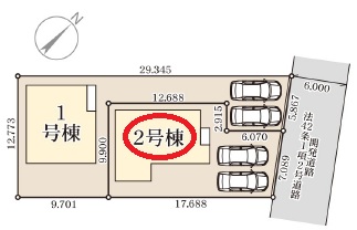 | 駐車場 | 2台 | 道路の幅員 | 北東側6.0m公道 |