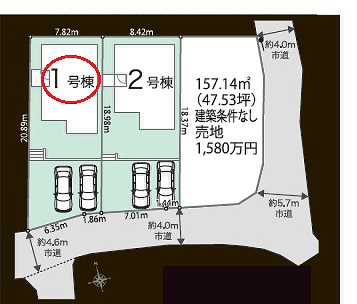 | 駐車場 | 2台 | 道路の幅員 | 南側4.0m公道 |