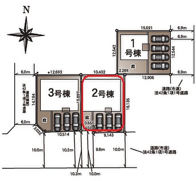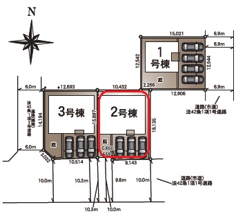 | 駐車場 | 3台 | 道路の幅員 | 南側10.0m公道 |