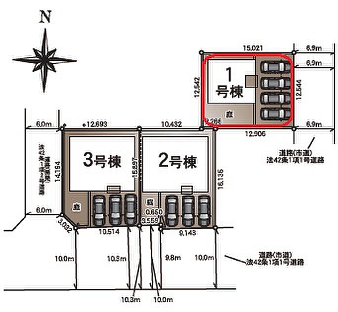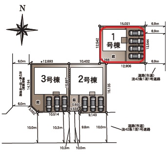 | 駐車場 | 4台 | 道路の幅員 | 東側6.9m公道 |