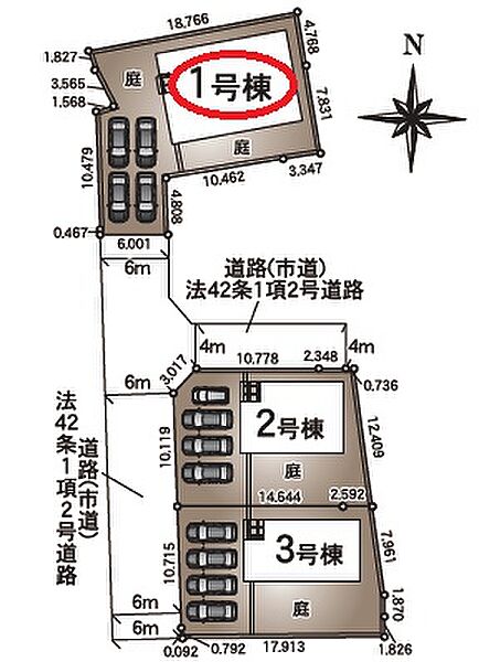 | 駐車場 | 4台 | 道路の幅員 | 南側6.0m公道 |