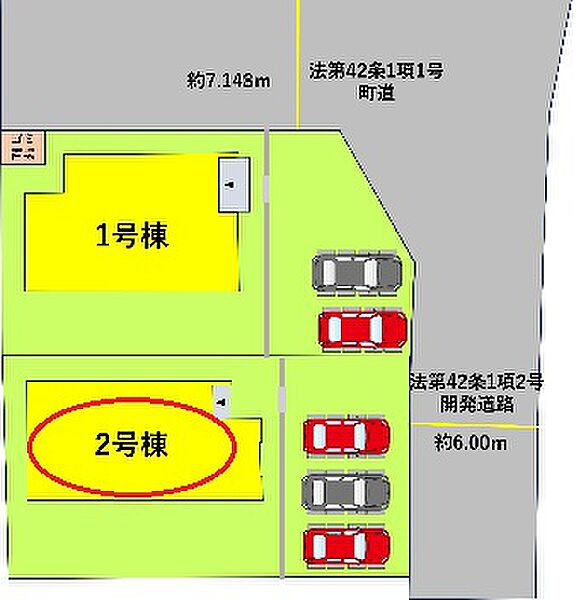 | 駐車場 | 2台 | 道路の幅員 | 東側6.0m私道 |