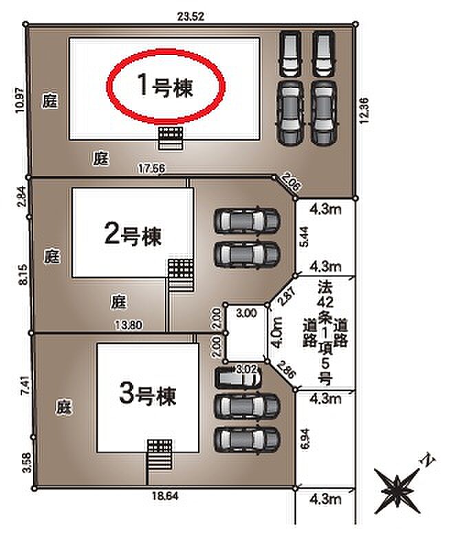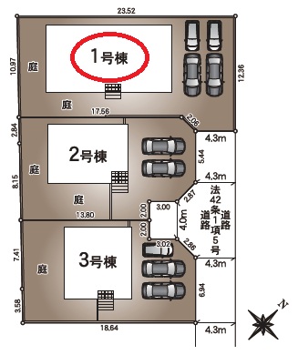 | 駐車場 | 4台 | 道路の幅員 | 南東側4.3m公道 |
