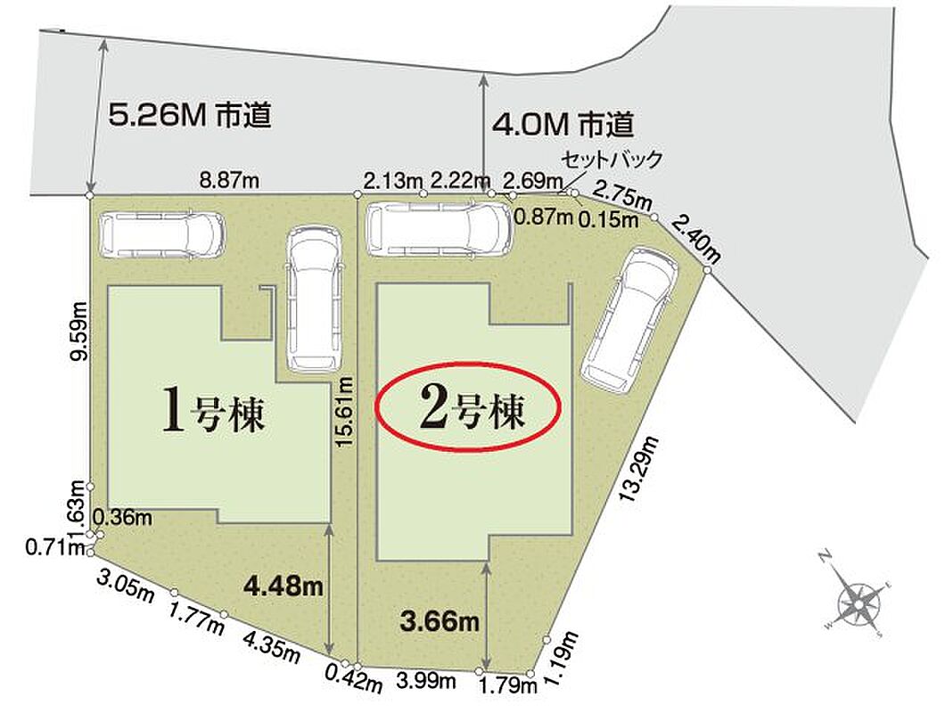 | 駐車場 | 2台 | 道路の幅員 | 北東側4.0m公道 |