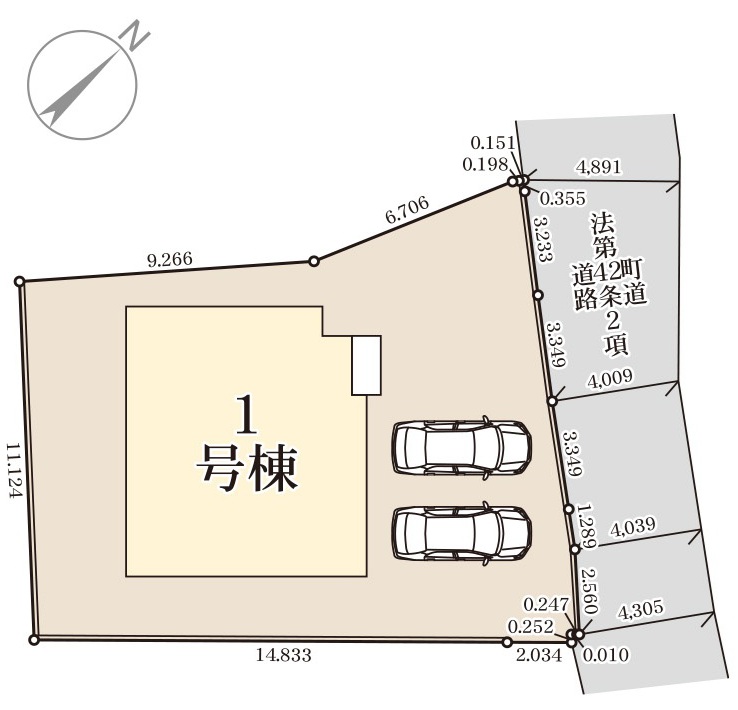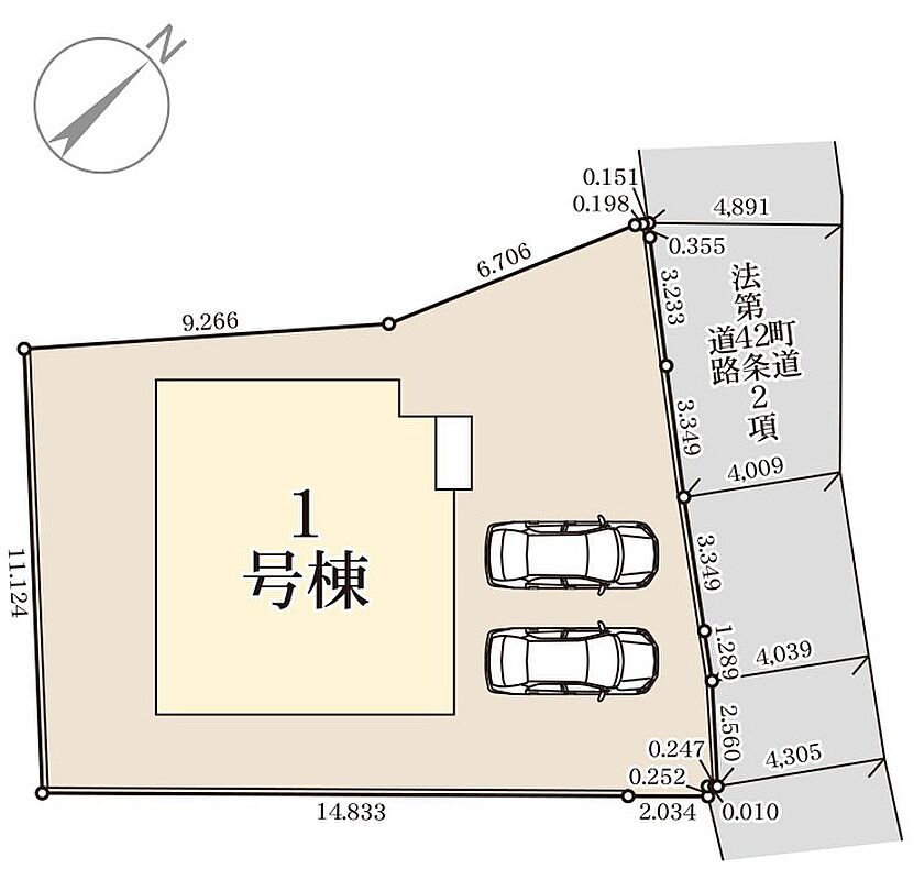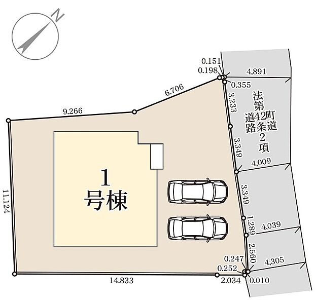 | 駐車場 | 2台 | 道路の幅員 | 北側4.0m公道 |