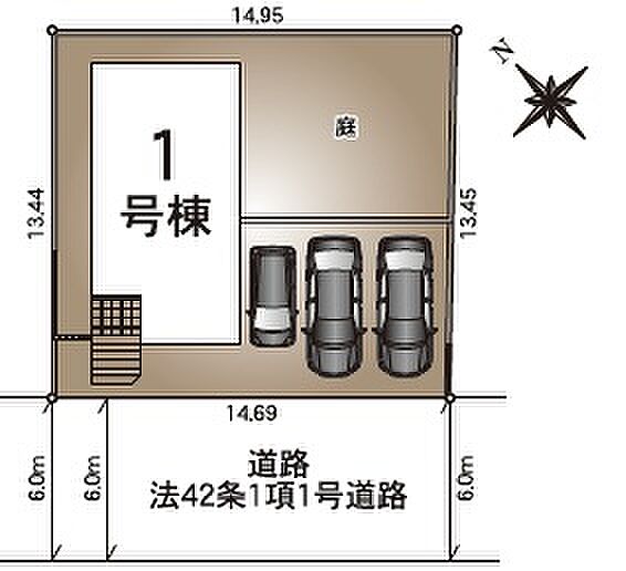 | 駐車場 | 3台 | 道路の幅員 | 南西側6.0m公道 |