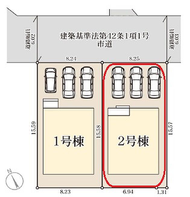 | 駐車場 | 3台 | 道路の幅員 | 北側6.0m公道 |