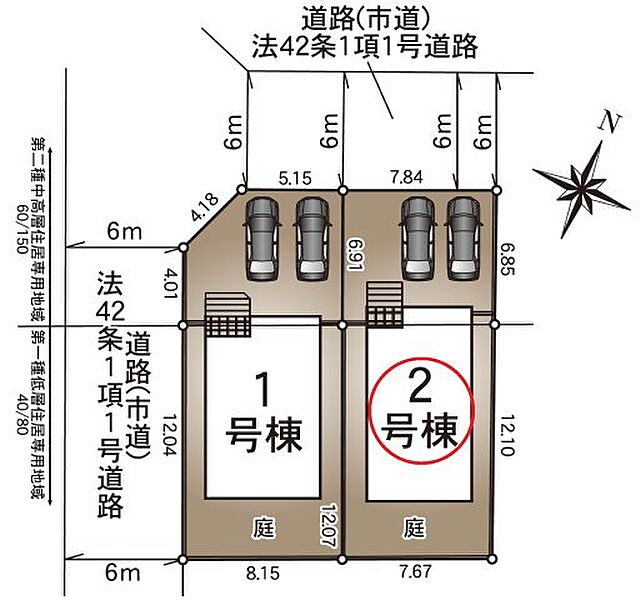 | 駐車場 | 2台 | 道路の幅員 | 北側6.0m公道 |