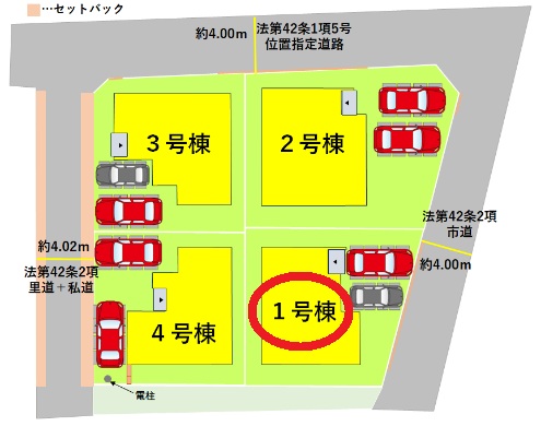 | 駐車場 | 2台 | 道路の幅員 | 東側4.0m公道 |