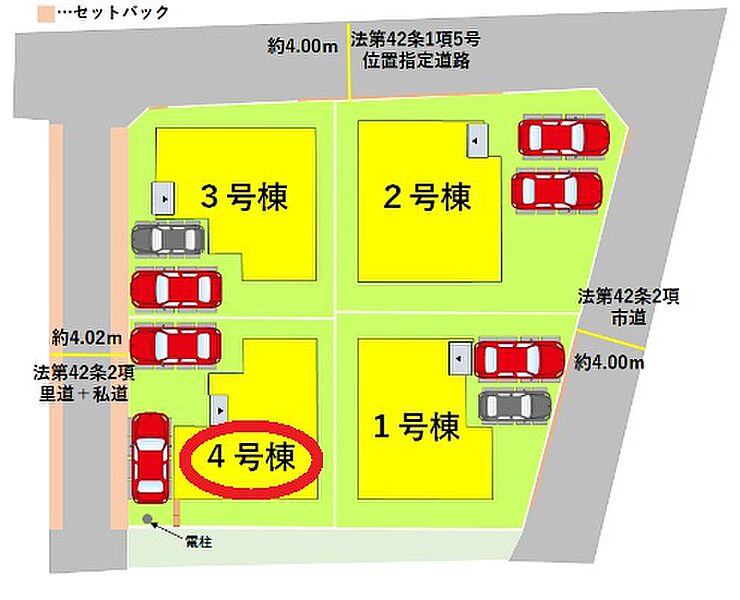 | 駐車場 | 2台 | 道路の幅員 | 西側4.0m私道 |