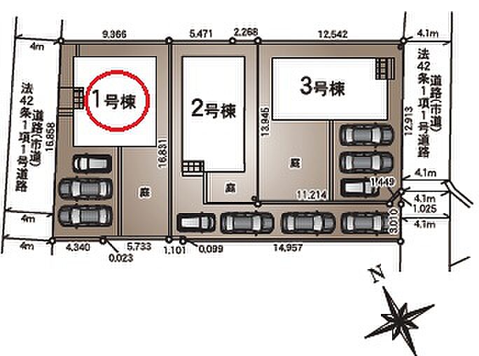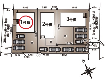 | 駐車場 | 3台 | 道路の幅員 | 北西側4.0m公道 |