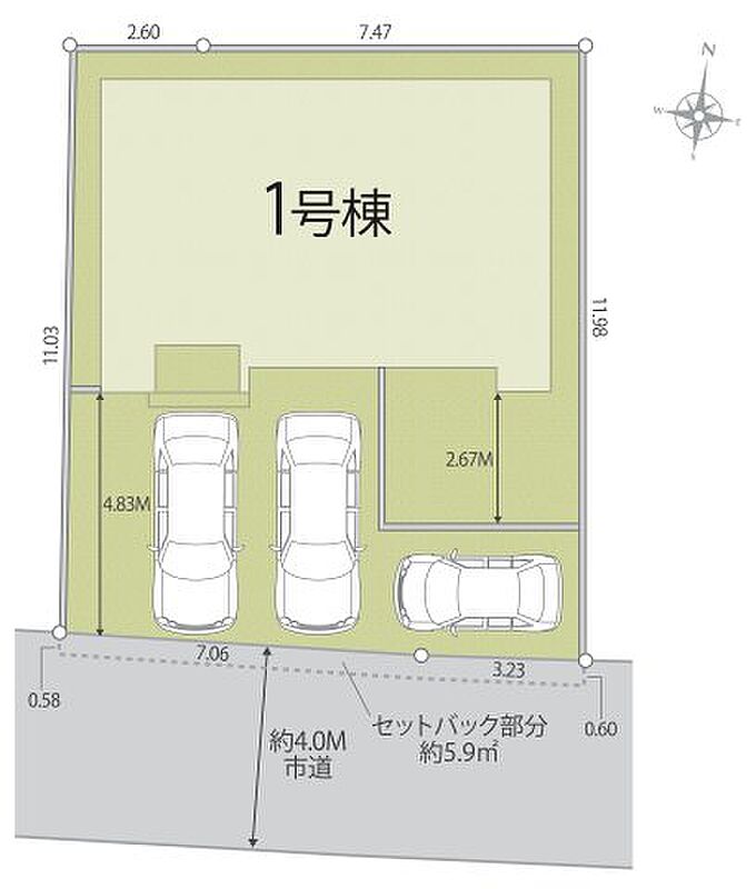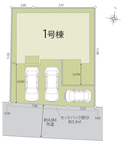 | 駐車場 | 3台 | 道路の幅員 | 南側4.0m公道 |