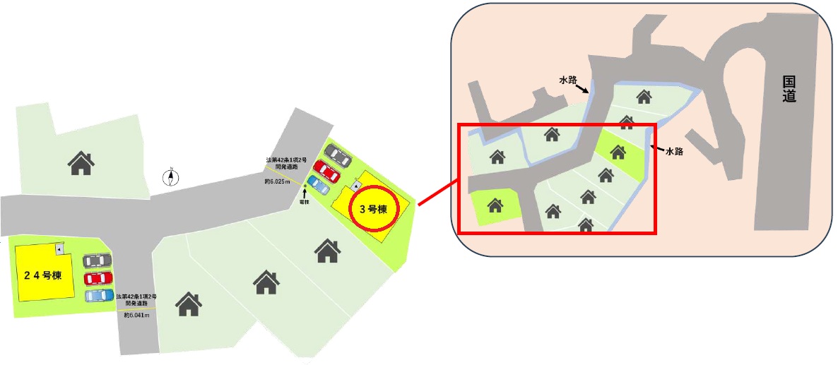 | 駐車場 | 3台 | 道路の幅員 | 北西側6.0m公道 |